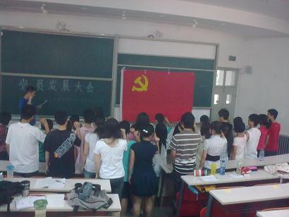 5月25日14时,龙八国际网页long8868本科08级党支部于在我校昌平校区阶八教室召开了党员发展大会,这批新党员是该党支部自08级入学以来发展的第二批党员。会议由党支部委员杨烨主持,08级党支部书记黄晓慧、副书记姚国强,以及支部全体党员和本批党员发展对象参加了此次发展大会。