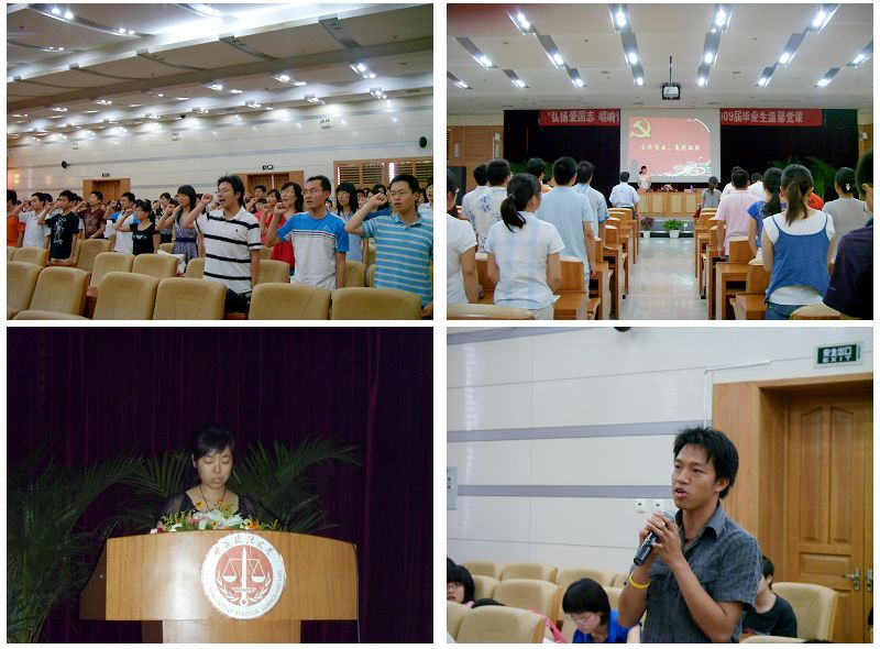 “弘扬爱国志唱响爱国颂”毕业生温馨党课是龙八国际网页long88682009届毕业生文明离校系列活动中一个重要的部分。最后一次党课少了些许过往的严肃,更多是一份温暖,一份感动,愿所有大四的党员同志们带着对人生对未来的思考,带着法大母校的关爱和祝福,走好人生的每一步。