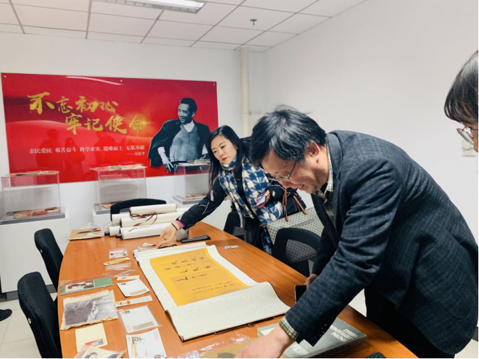 之后,焦玉星一行来到位于逸夫楼的焦裕禄精神学习室,和正在此进行学习的同学一起交流,对学习室的建设给予指导。